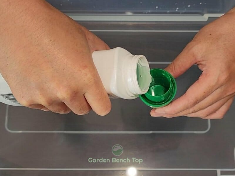 Measure out the volume of water you are filling your container with (or at least make a good guestimate). It will help you understand the amount of fertilizer you need in the next step.