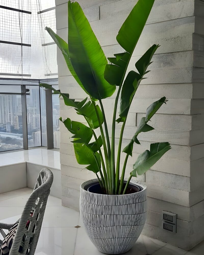The Bird of Paradise, with its tall, sturdy stalks and strikingly beautiful, large leaves, is an excellent choice to breathe life and verticality into your living space. Its height, which can reach up to 6 feet indoors, naturally draws the eye upwards, creating a sense of elevation and openness. This tropical beauty can transform any corner into a mini indoor jungle, adding a touch of the exotic to your living room.