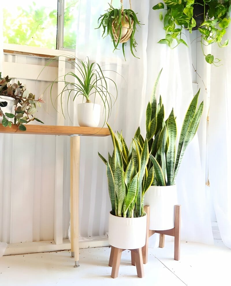 Snake plants, also known as Sansevierias, are another option when you’re looking to introduce some height into your living space.