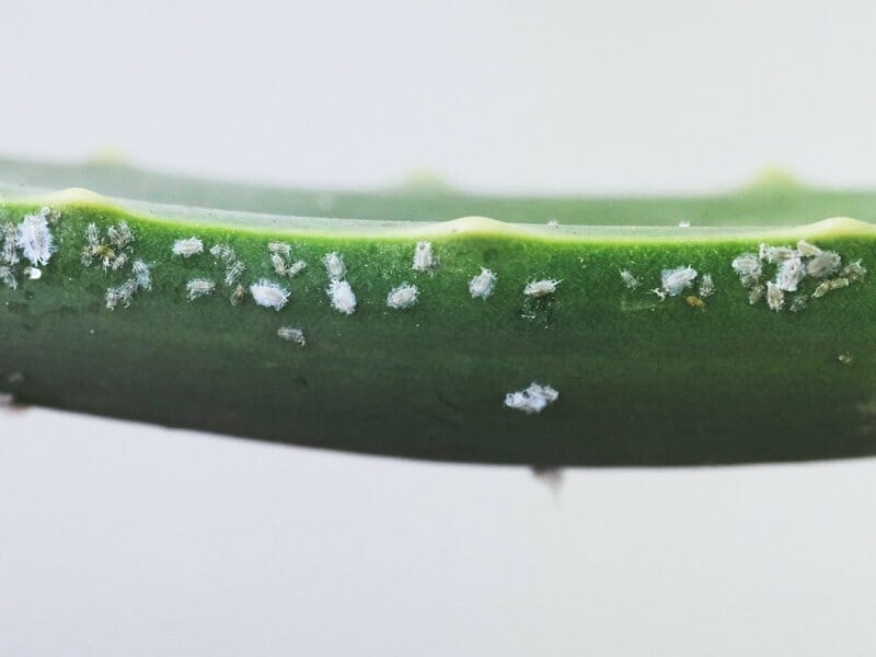 - Mealy Bugs – are ancient looking bugs that could easily feature in one of the Jurassic Park movies. They are white scaly bugs that have oval shaped bodies, with tiny legs protruding out. From afar, it looks like your plant may be infested with white mold or has been attacked with talcum powder. But, up close, you will see hundreds of individual bugs huddling together in colonies.